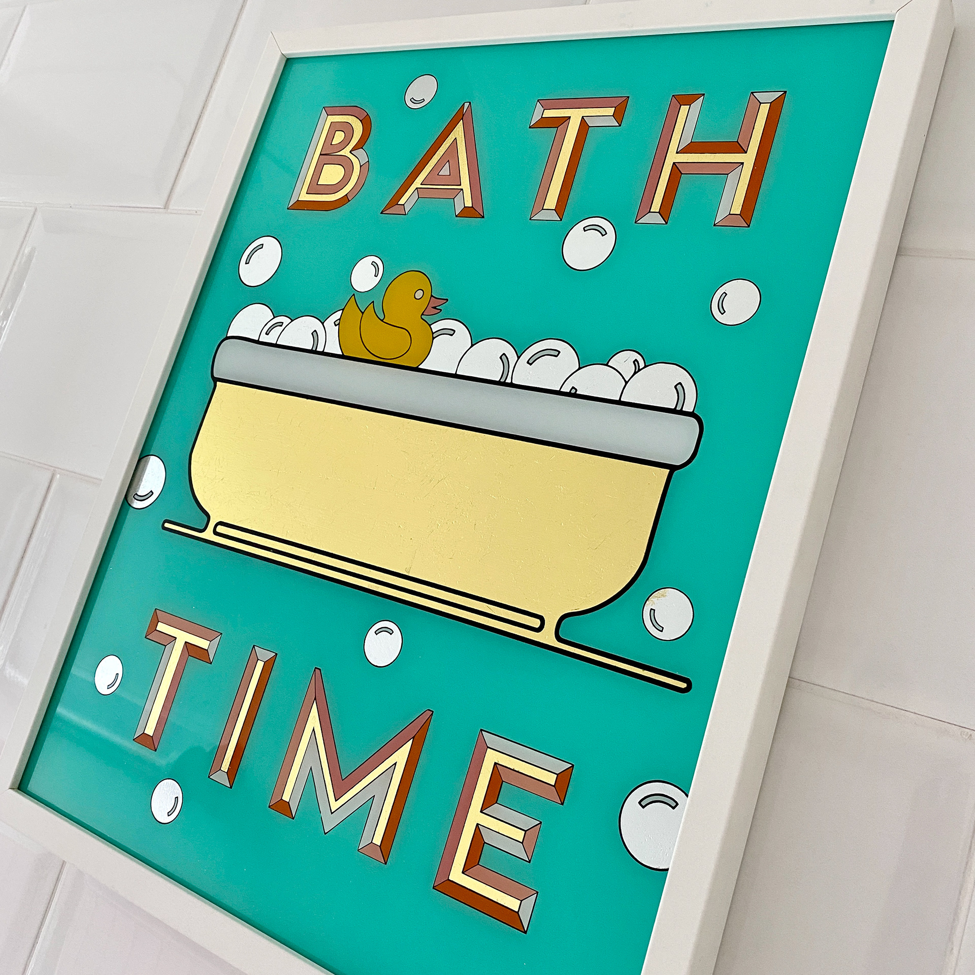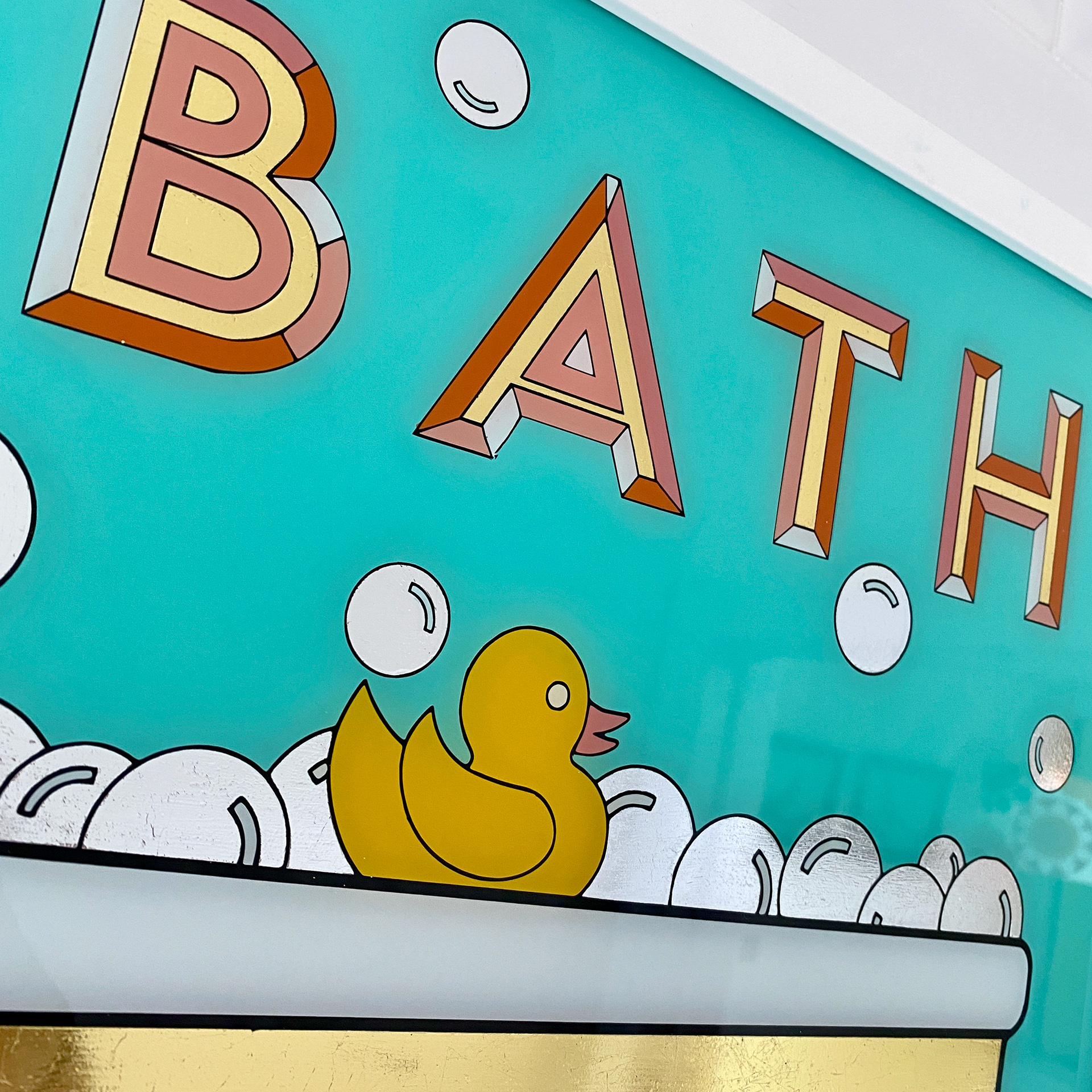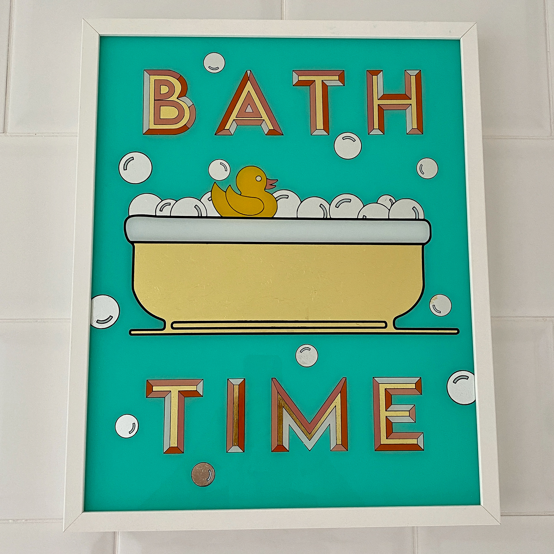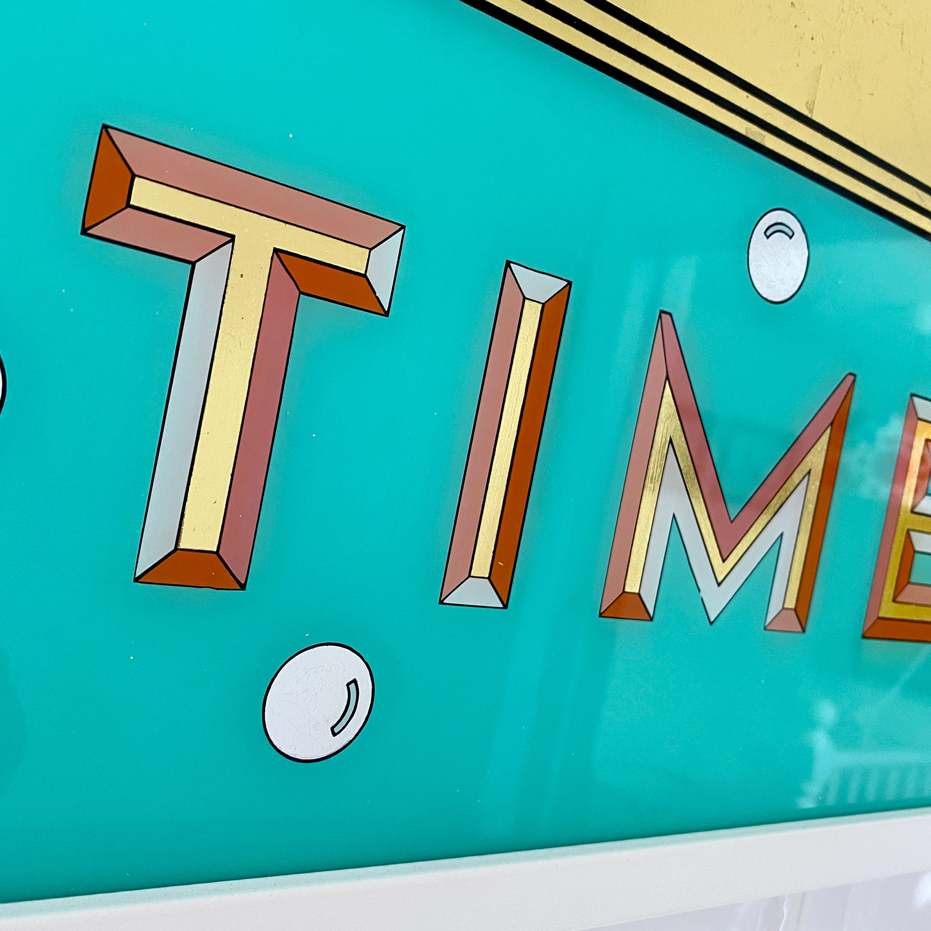 SILVER/GOLD LEAF, ACRYLIC AND VINYL ON GLASS