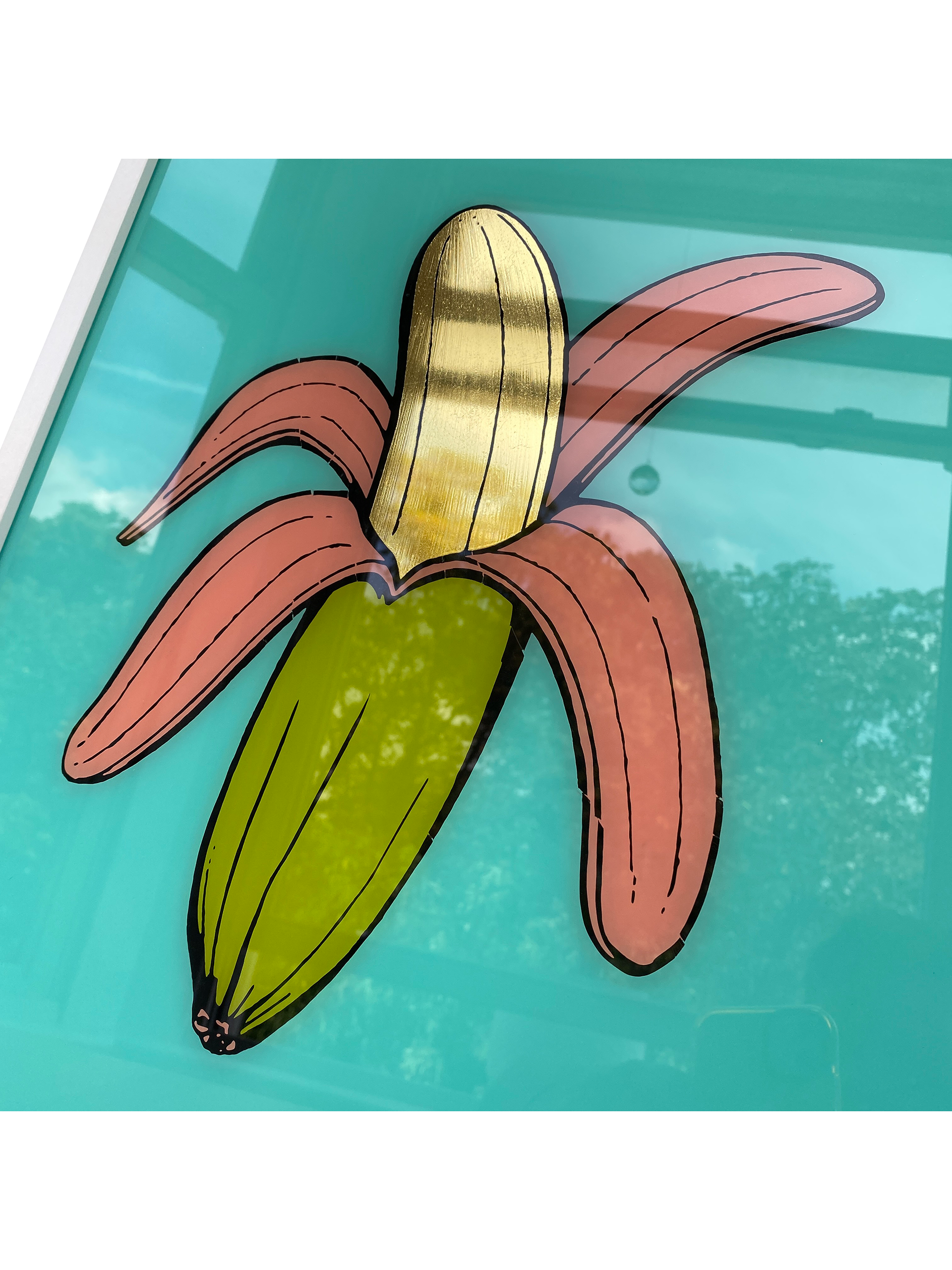- GOLD LEAF, ACRYLIC AND VINYL ON GLASS