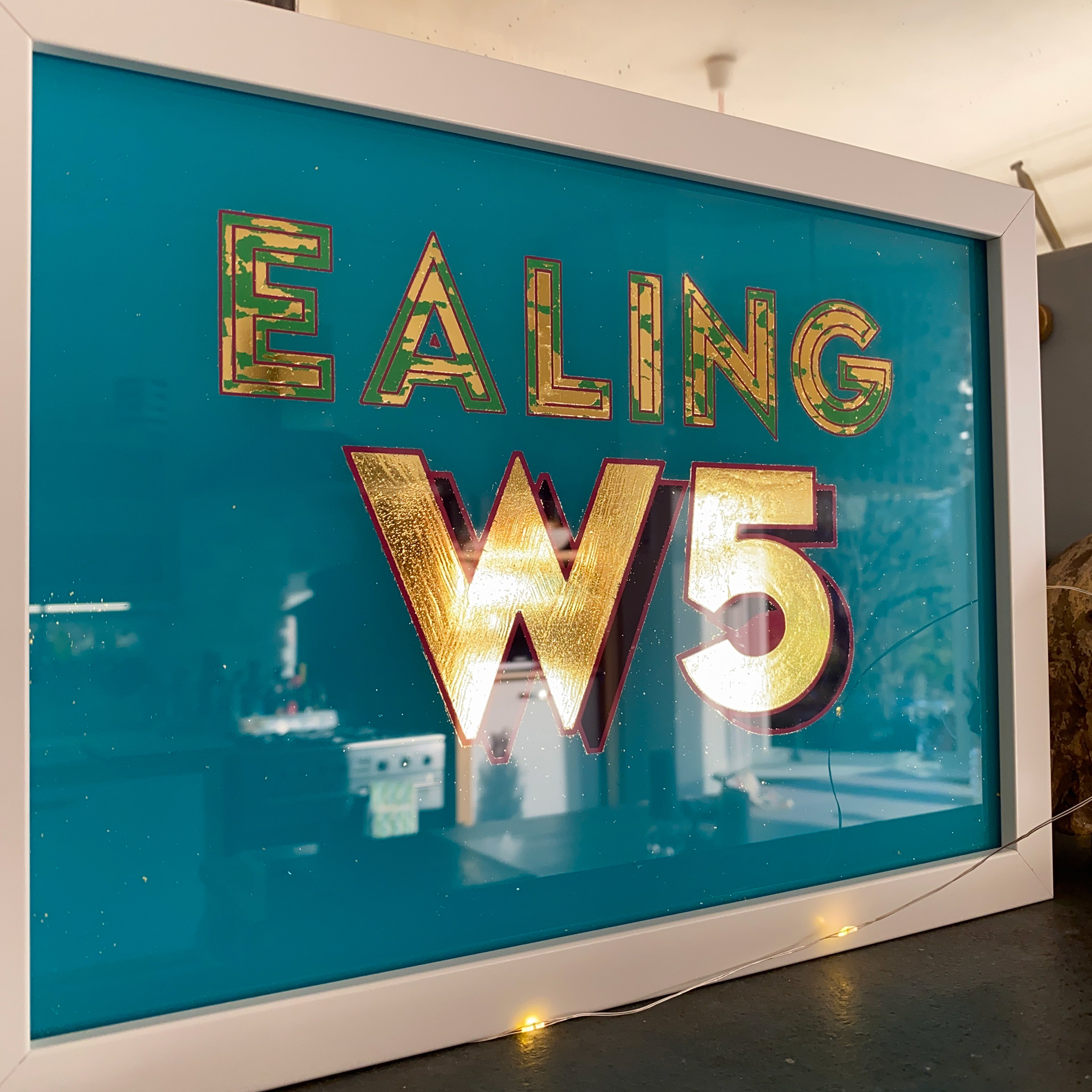 GOLD OR SILVER LEAF, ACRYLIC AND VINYL ON GLASS