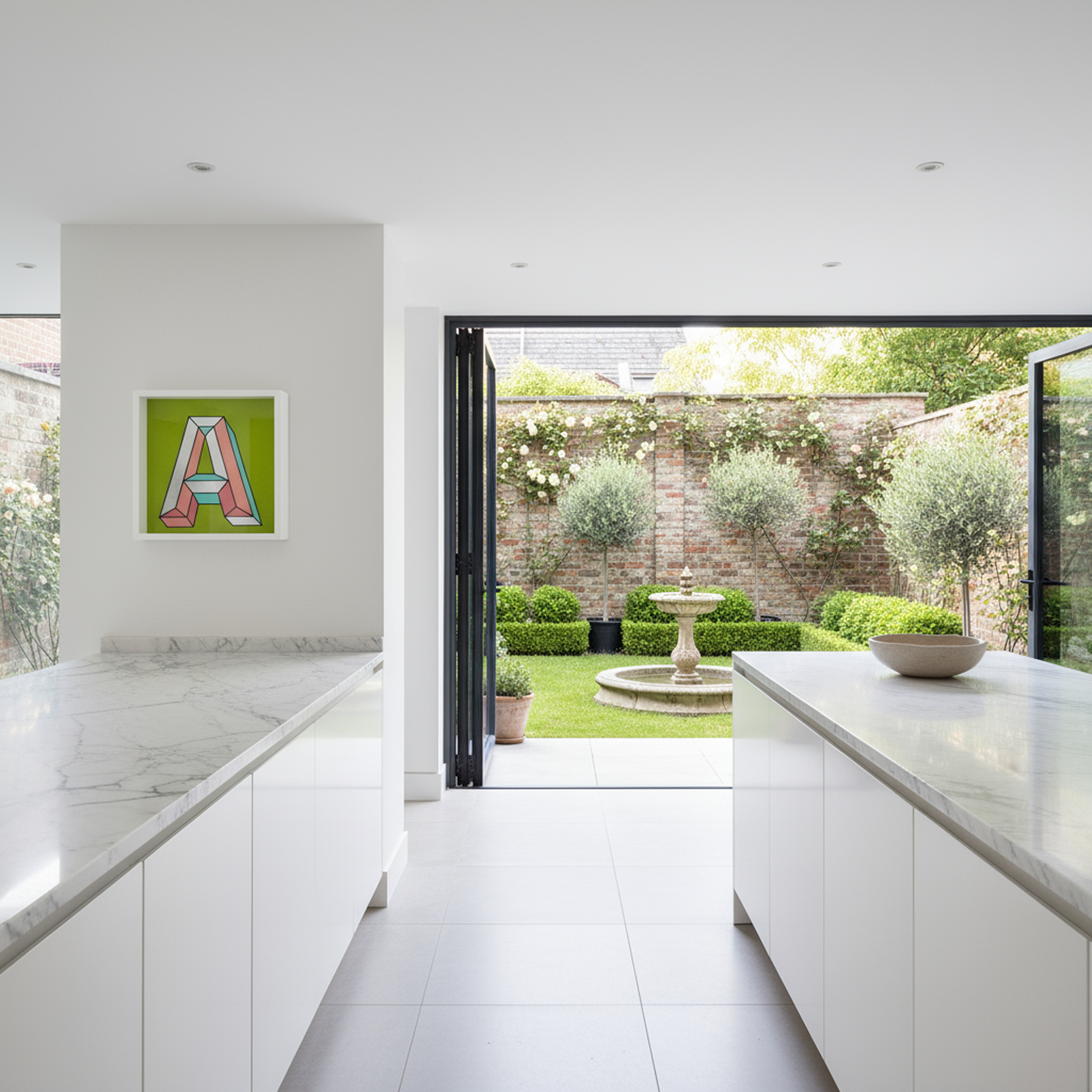 SILVER/GOLD LEAF, ACRYLIC AND VINYL ON GLASS