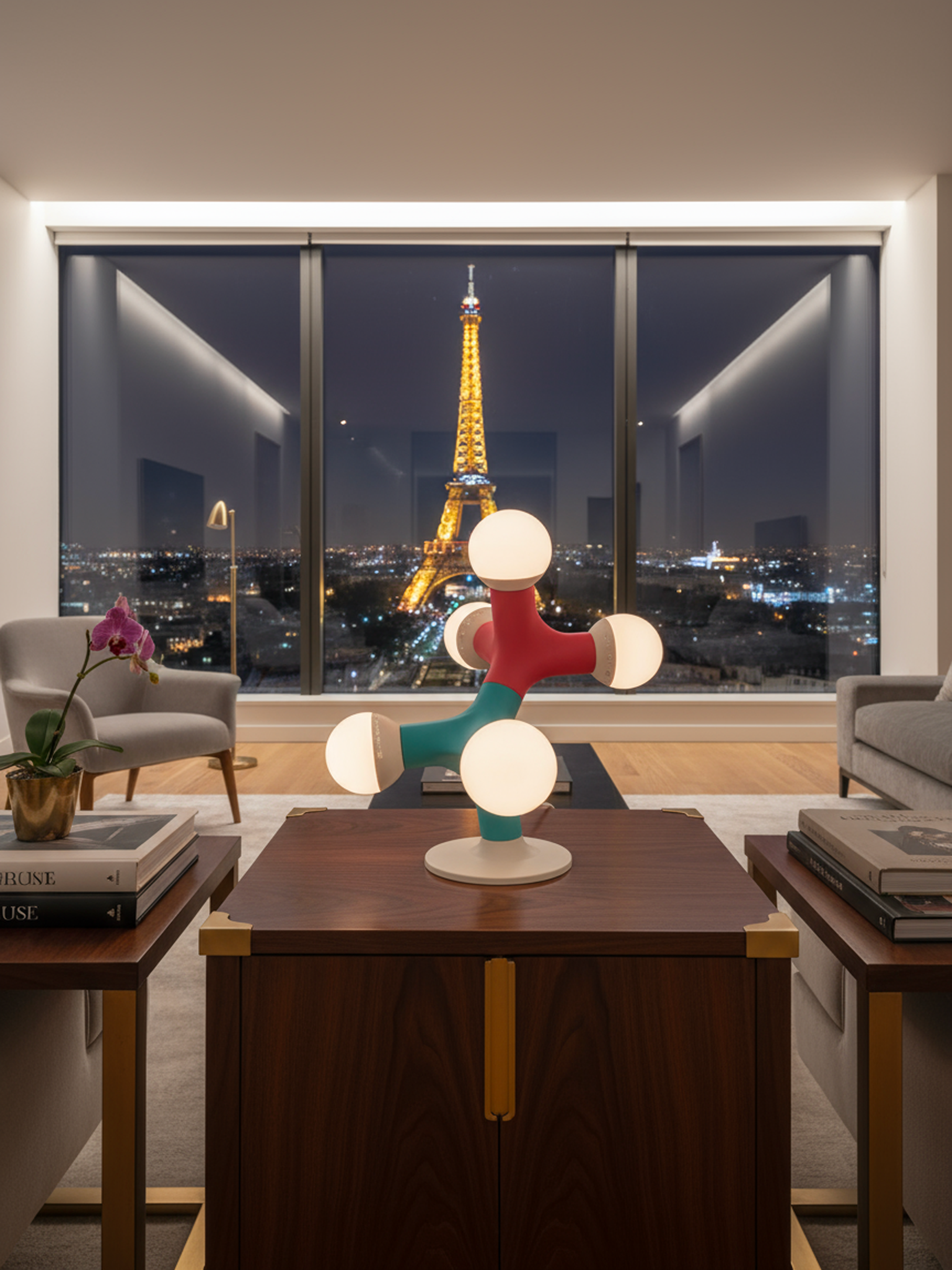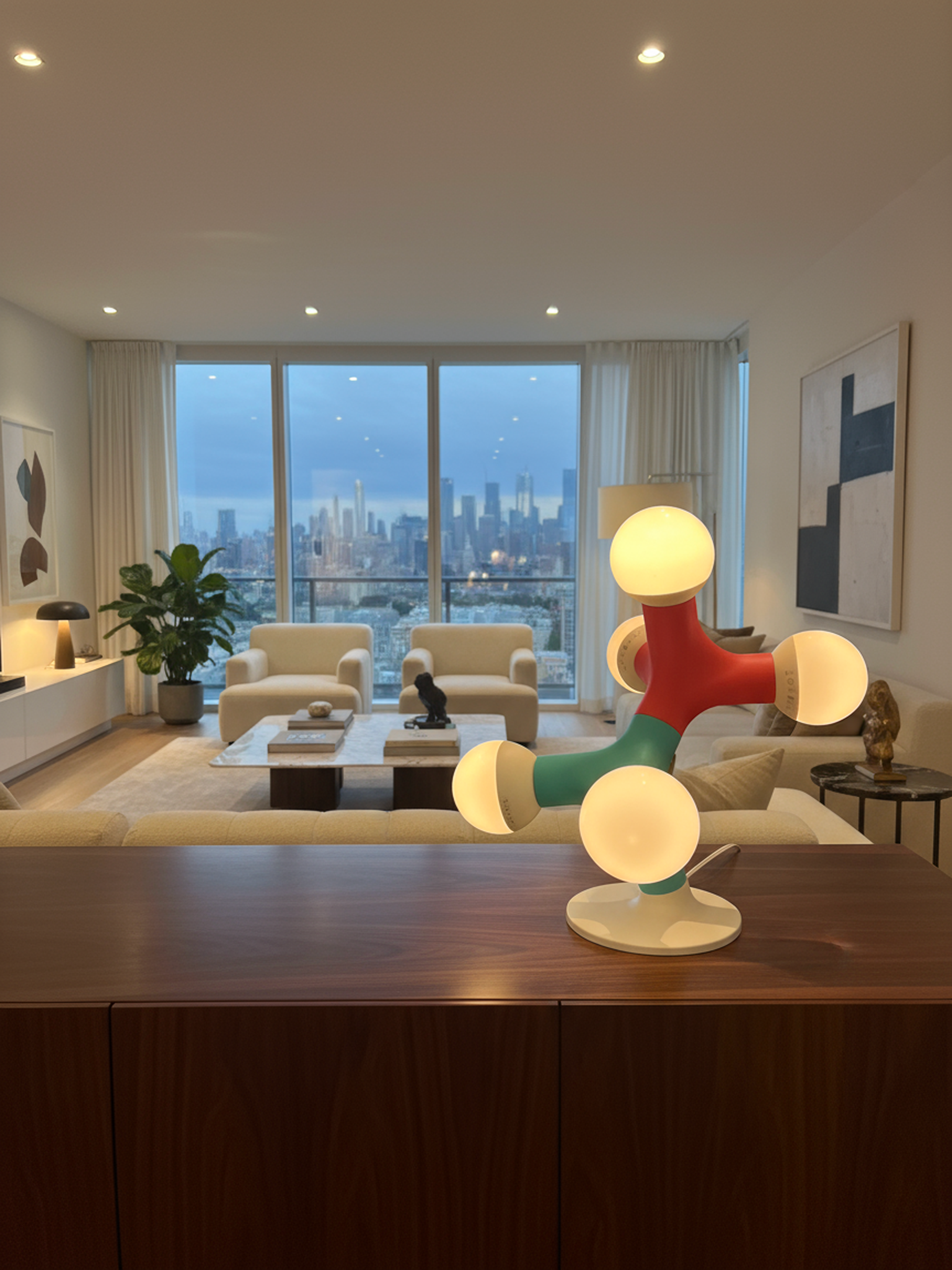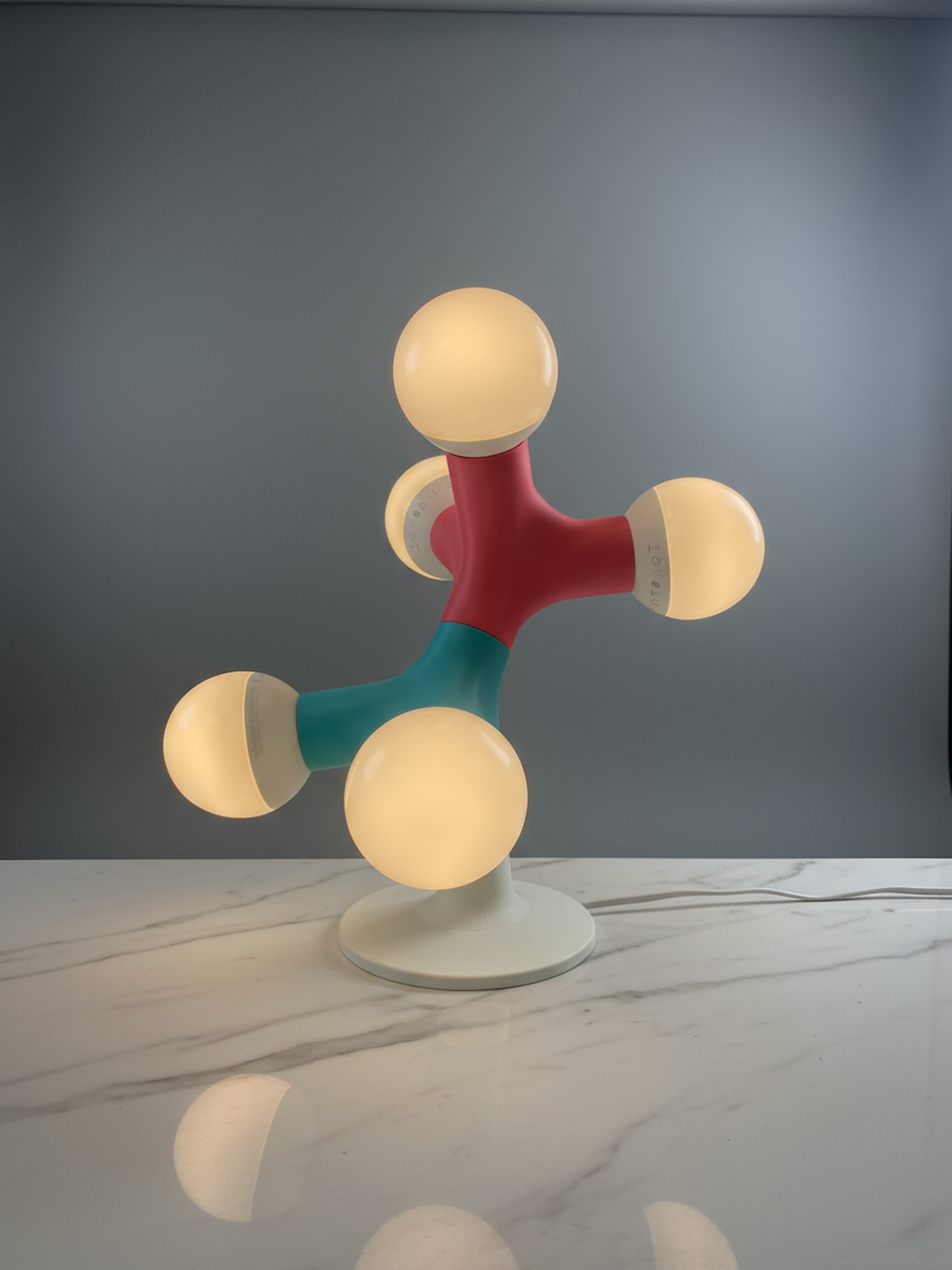 Crafted with a striking choice of 8 colours and glowing spherical and dimmable bulbs (bulbs not included), this lamp turns light itself into sculpture. Its playful molecular shape evokes curiosity and conversation, while its soft ambient glow makes it ideal for studios, offices, or minimalist interiors.