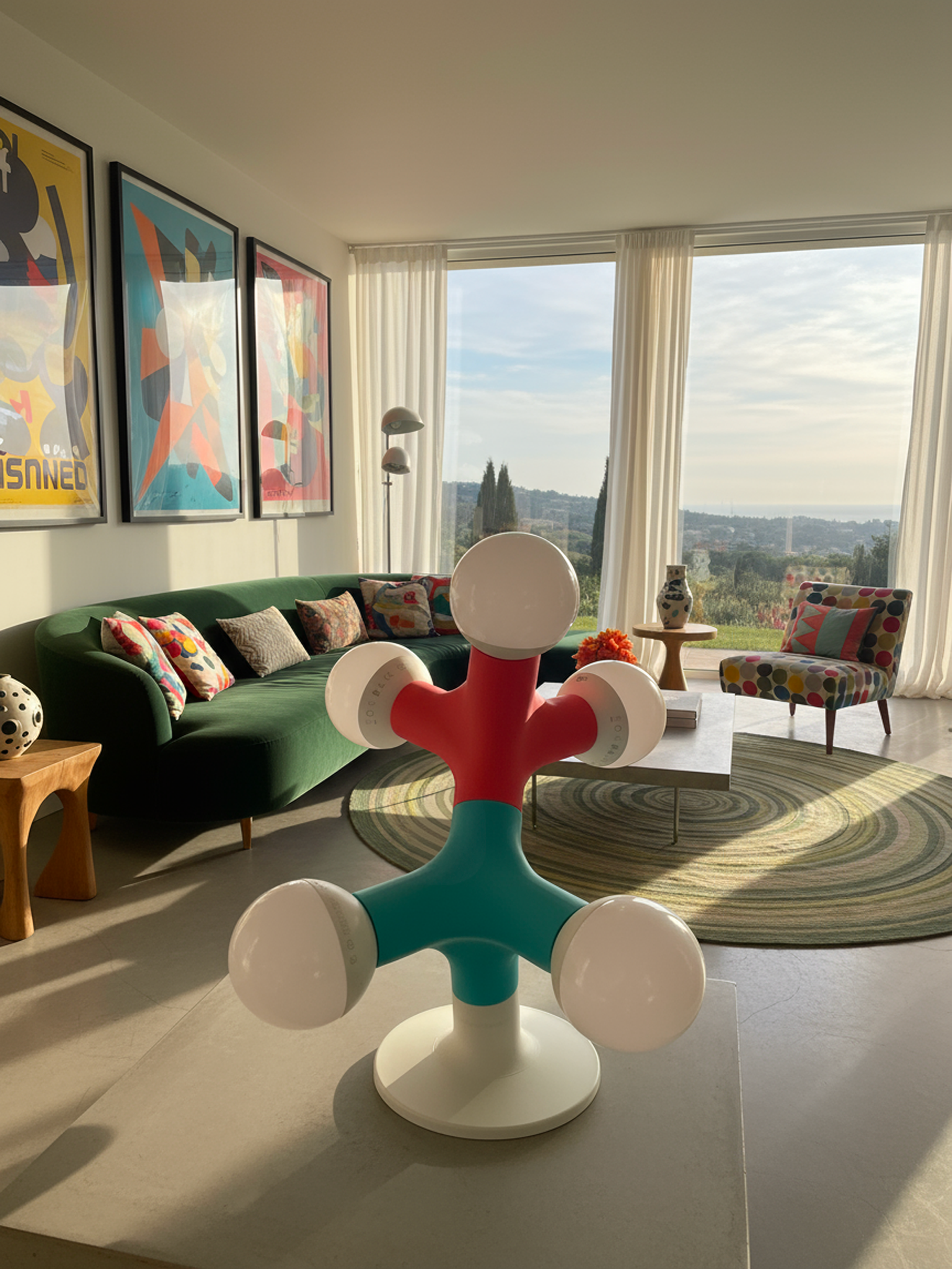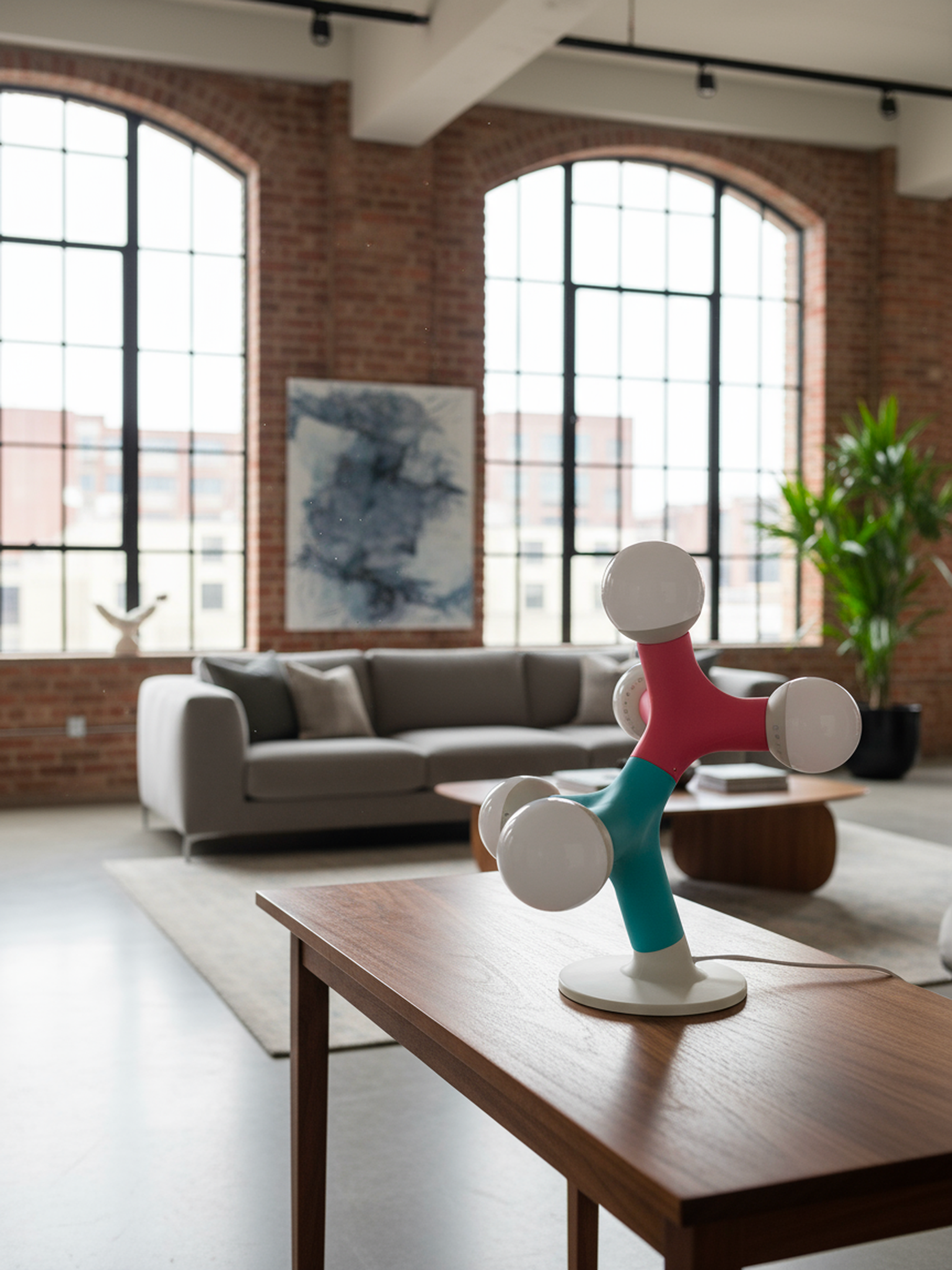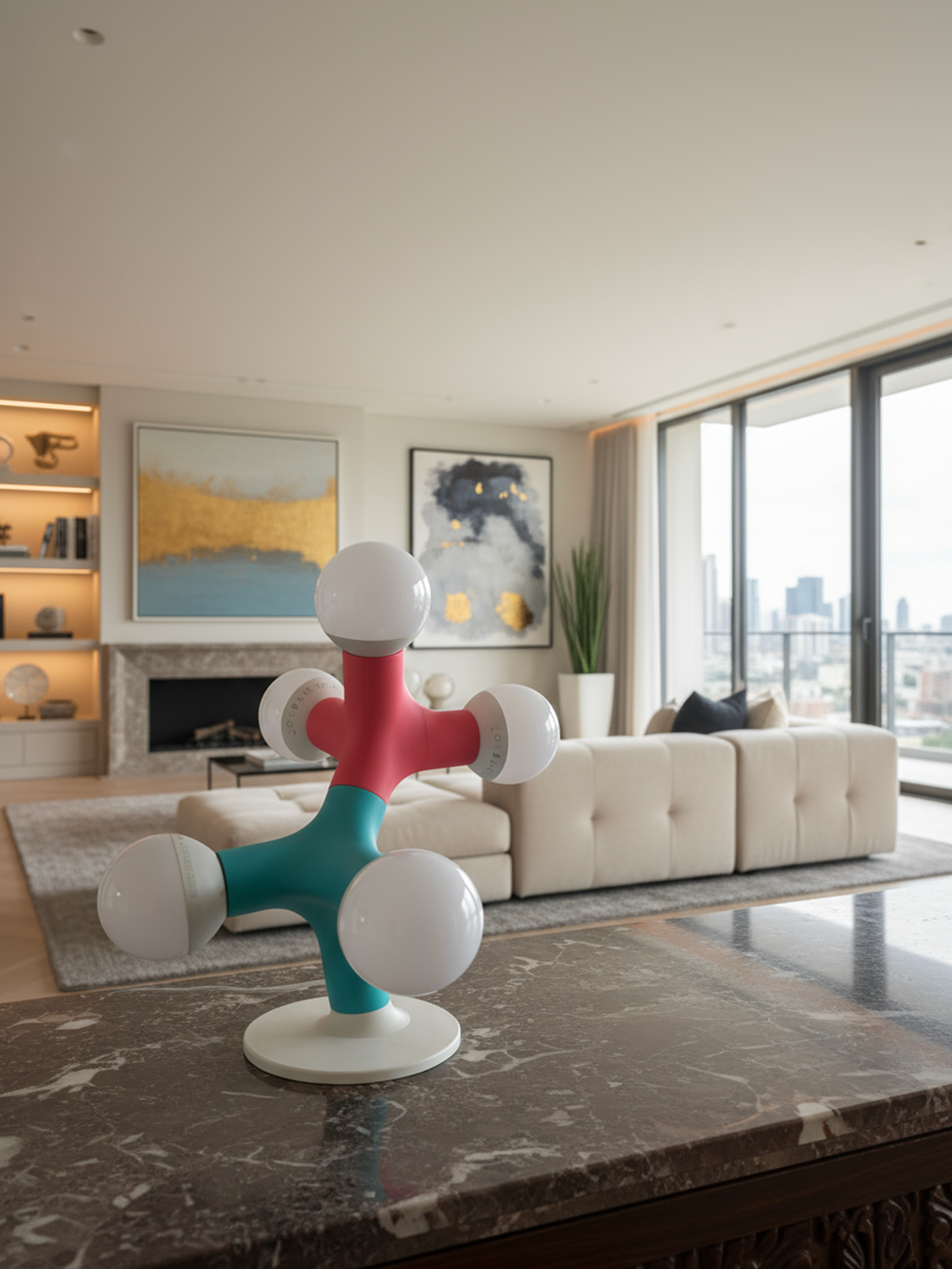 Crafted with a striking choice of 8 colours and glowing spherical and dimmable bulbs (bulbs not included), this lamp turns light itself into sculpture. Its playful molecular shape evokes curiosity and conversation, while its soft ambient glow makes it ideal for studios, offices, or minimalist interiors.