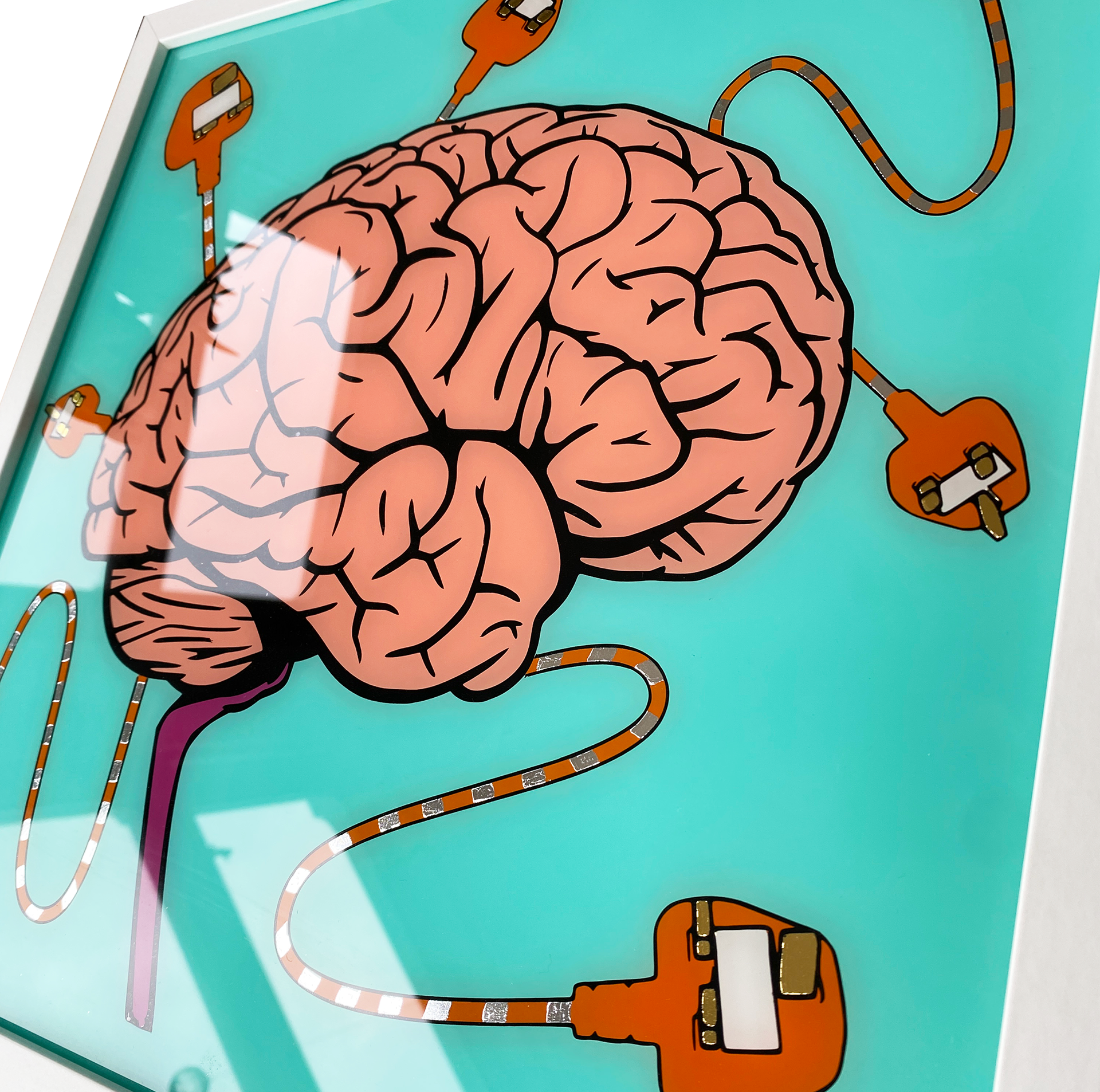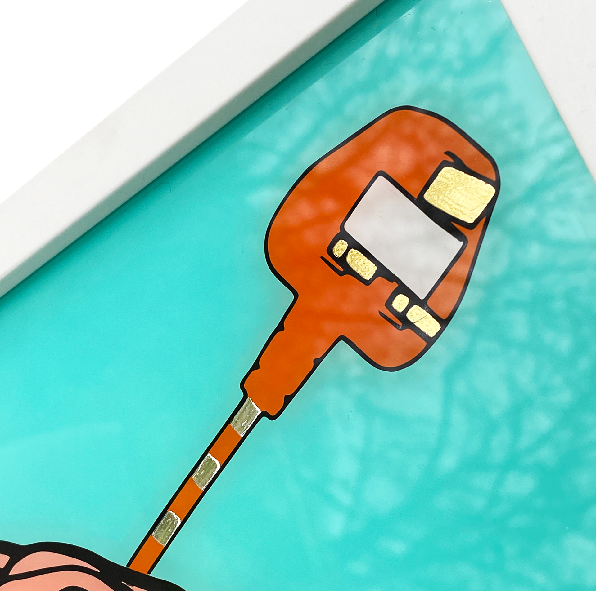 - GOLD & SILVER LEAF, ACRYLIC AND VINYL REVERSE PAINTED ON GLASS