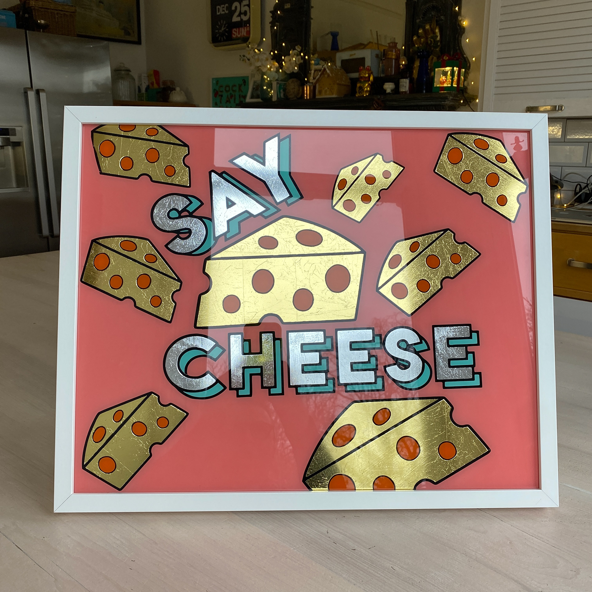 SILVER/GOLD LEAF, ACRYLIC AND VINYL ON GLASS