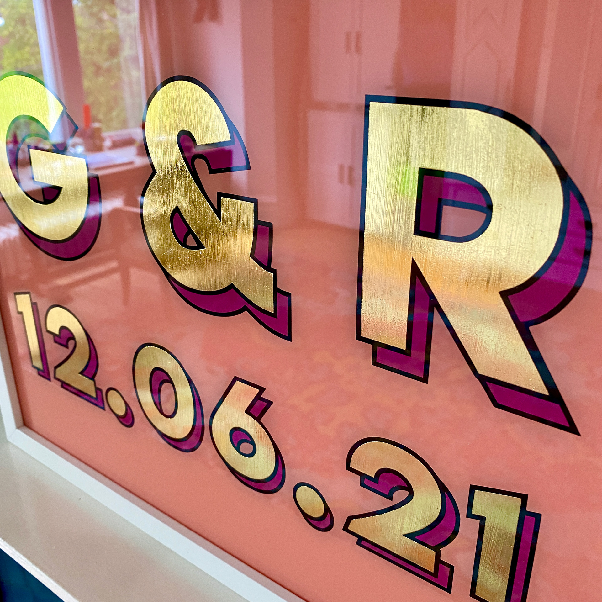 GOLD OR SILVER LEAF, ACRYLIC AND VINYL ON GLASS